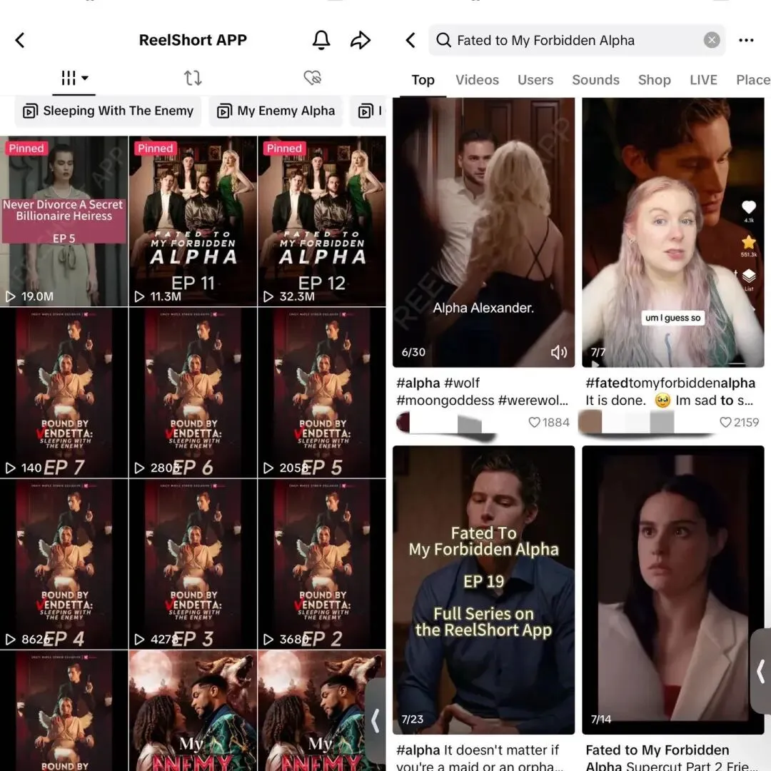 (左为ReelShort TikTok内容播放量,右为主推剧搜索内容)