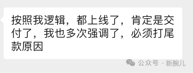 「按照你之前说的,今天打钱有点困难。目前情况,就是负责人认为,被绿这个成品剧,当初他看的时候,节奏不对,调整之后他觉得还是有问题,最后为啥会交付上线。」