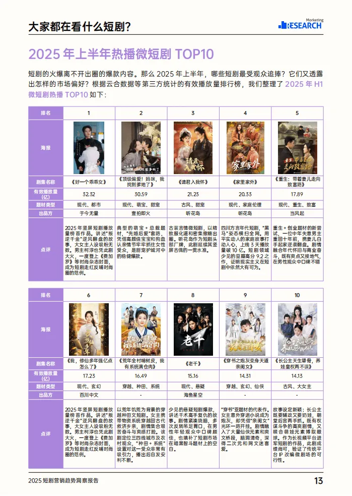 市场四大核心洞察凸显行业变革:一是精品化成为共识,制作周期拉长、成本攀升,“预售制”等成熟模式逐步落地;二是题材分众化趋势明显,“千人千剧”的定制时代来临,情绪精准度成为内容核心竞争力;三是AI赋能创作转型,实现从“经验创作”到“数据创作”、“人机共创”的转变;四是商业模式多元进化,形成“用户付费+广告植入+品牌定制+电商带货”四维并行格局。