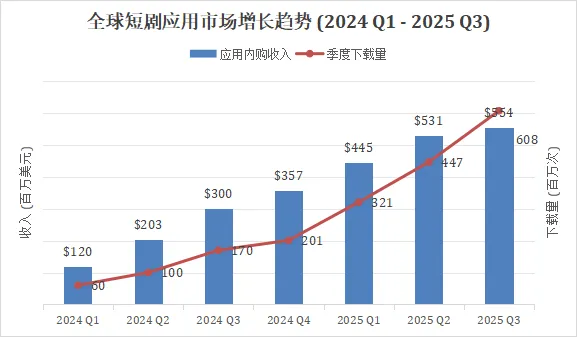 2025 年第三季度全球短剧应用市场呈现出用户规模爆发式增长与商业化增速放缓并存的显著特征。中国出海平台与海外本土玩家形成差异化竞争格局,市场数据与产品表现均呈现出结构性突破。以下从市场表现、头部应用情况、区域分化等维度展开分析: