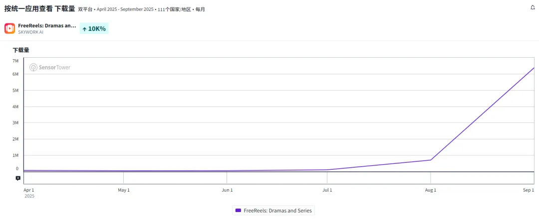 本季度最大亮点是StoryTV 与 FreeReels的爆发式增长,两者排名均飙升逾百位进入 TOP20。FreeReels 依托昆仑万维的资本优势,采用 "免费观看 + 广告变现" 模式,快速渗透东南亚、墨西哥等市场。
