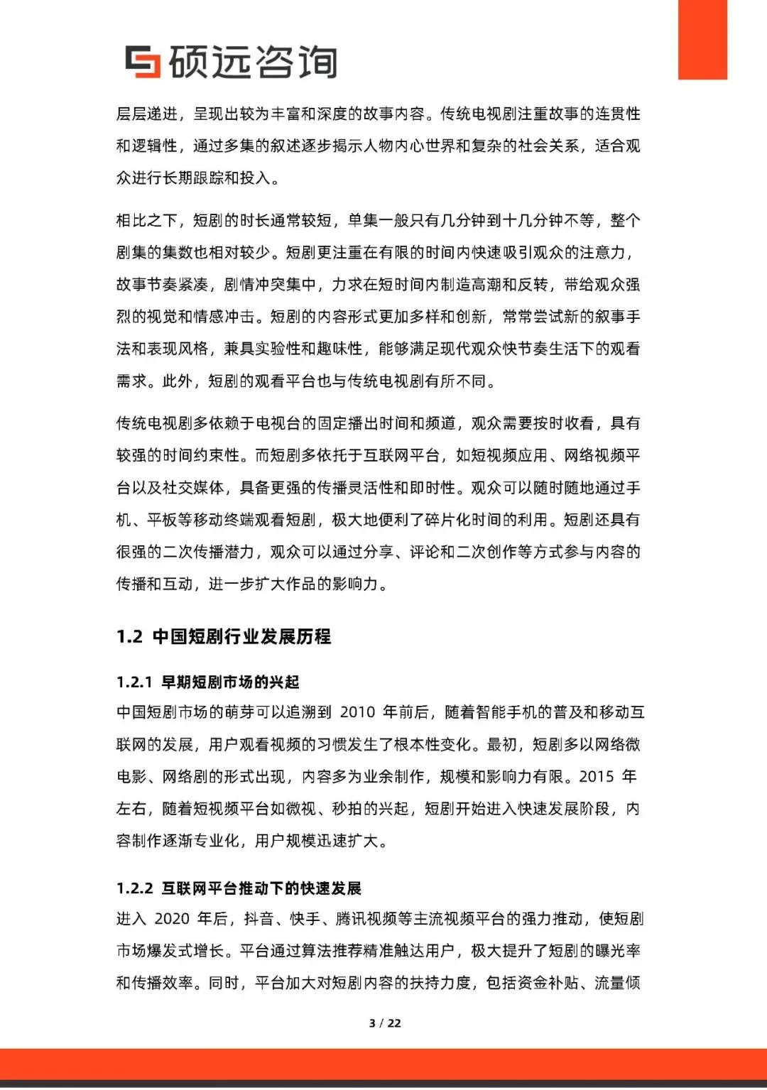 行业概况短剧指单集5—15分钟的剧集,以节奏紧凑、适合碎片化观看为特点,主要依托互联网平台传播。与传统长剧相比,短剧更注重快速吸引观众,内容形式多样,并逐步融入互动元素。