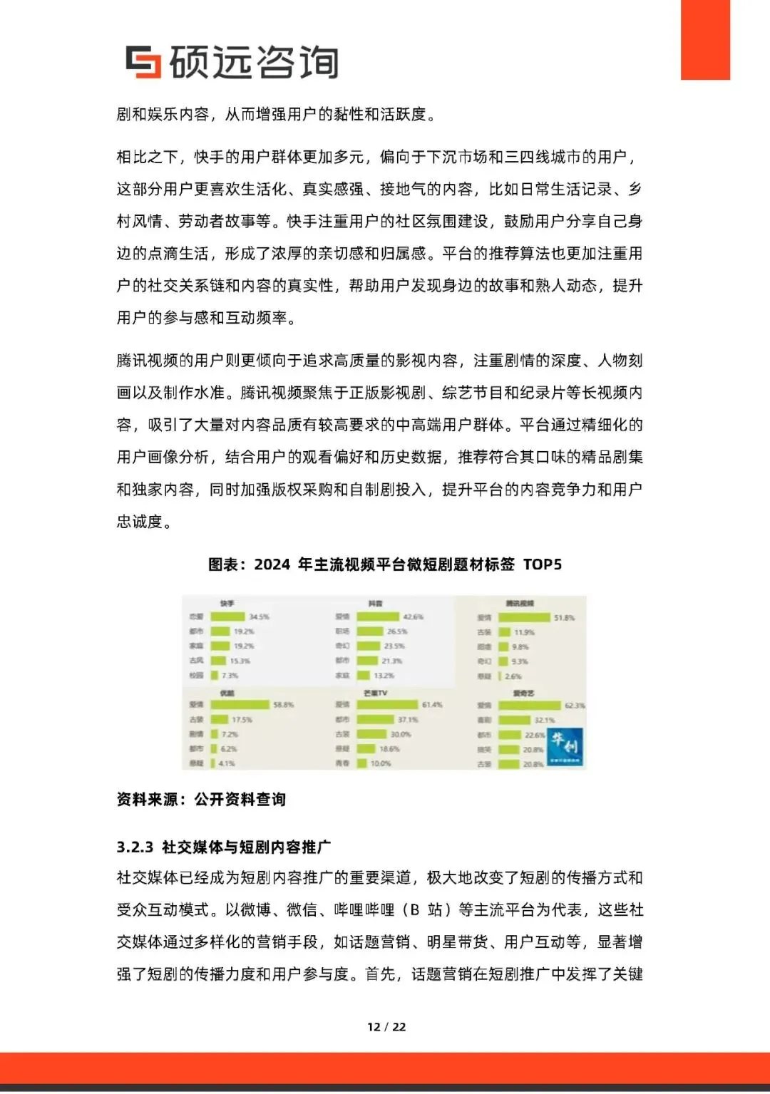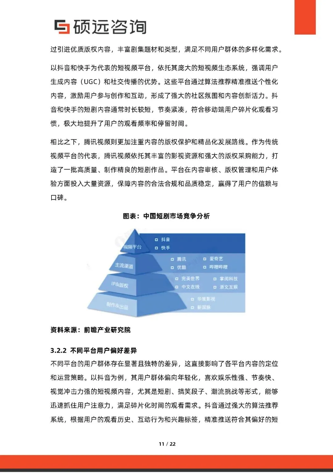 竞争格局头部制作公司(如欢喜传媒、华策影视)依靠专业团队与资源优势领先;新兴团队则借助AI、虚拟演员等技术实现创新。抖音、快手、腾讯视频等平台通过自制+采购策略布局短剧,用户偏好差异明显,抖音重娱乐快节奏,快手偏生活化,腾讯视频注重精品内容。