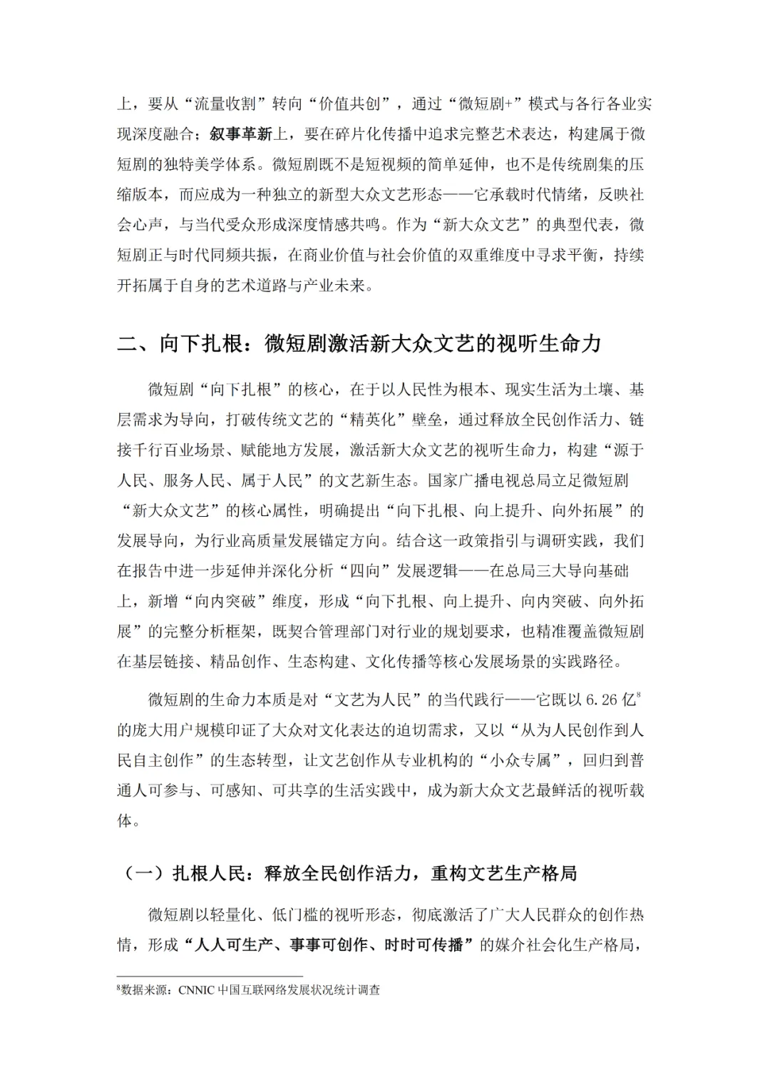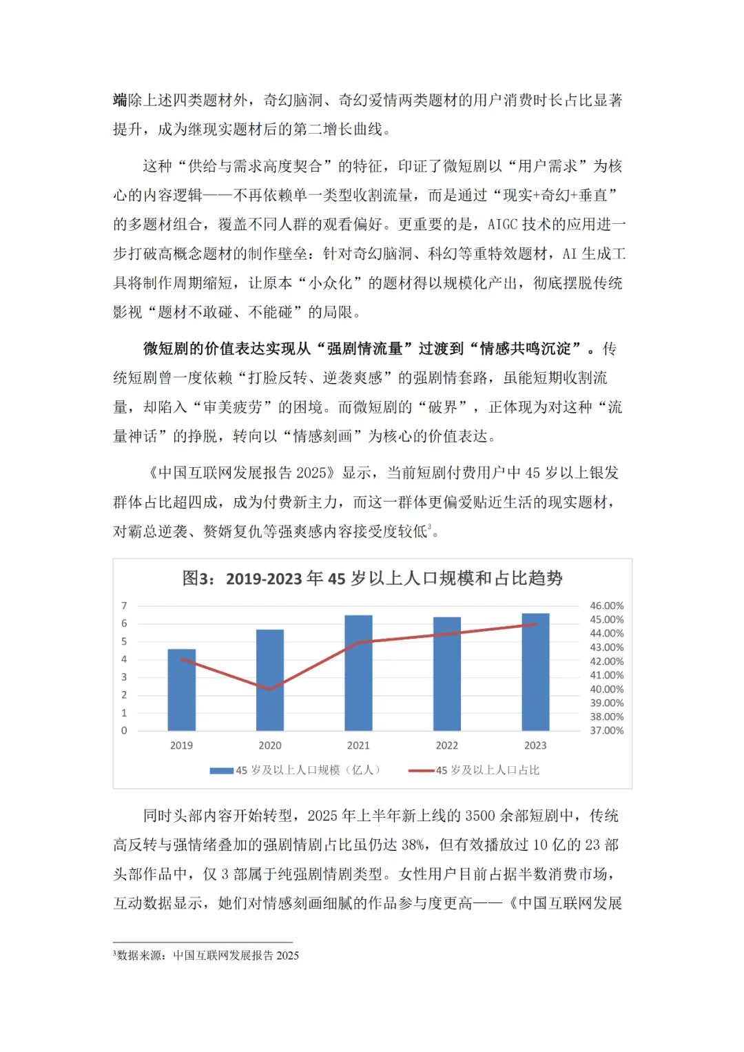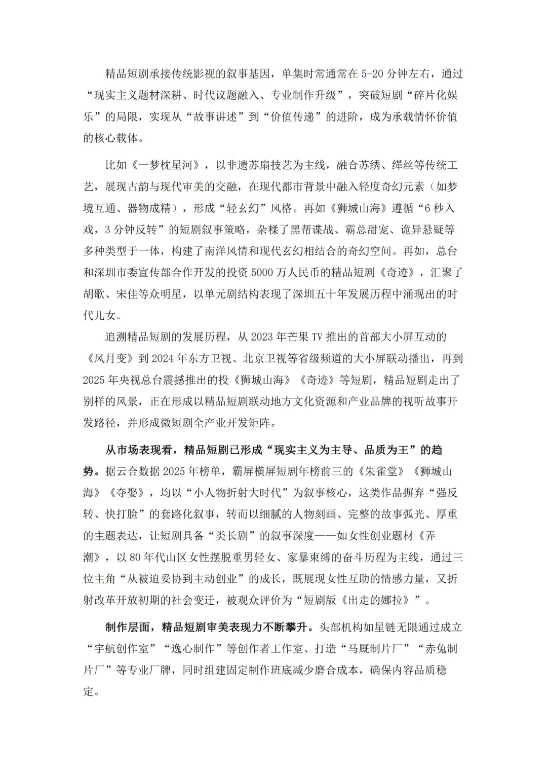 作为新大众文艺的代表,微短剧在广电总局政策引导下实现了从情绪刺激到情感共鸣再到价值沉淀的三级跃迁,如今正朝着细糠短剧式的精品化方向深耕,题材覆盖普法、传统文化、乡村振兴等多元领域。产业端与文旅、品牌营销等千行百业深度融合,“一剧带一景”等模式渐成主流,吸引了占比24.29%的Z世代等广泛受众参与。不过行业仍面临盗版侵权、创作动力续航、AIGC技术冲击等挑战,需通过内容深耕、产业协同、技术赋能等路径推进生态共建,实现长远发展。