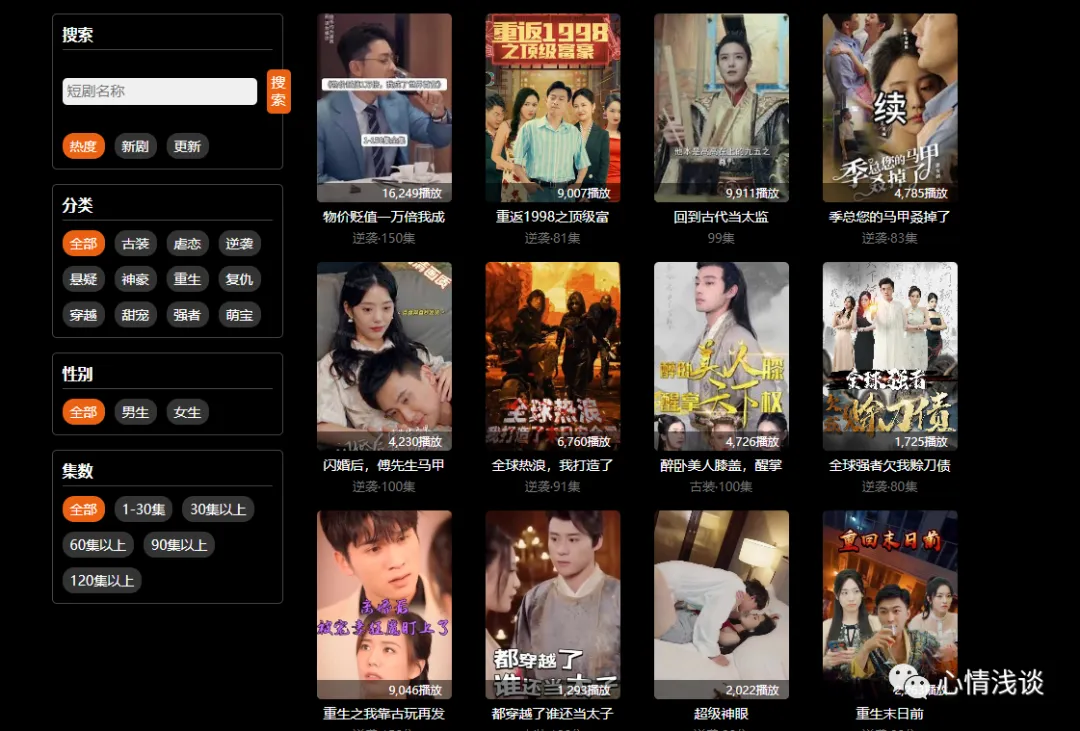 名称:心情推荐01:免费热门网络短剧在线播放平台