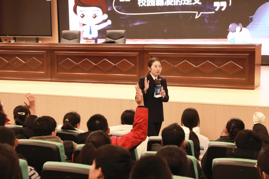 近日,江苏省扬州市邗江区检察院未检团队检察官走进中学,讲授预防校园欺凌法治课,并介绍该院编著的《成语里的法律智慧》普法书。