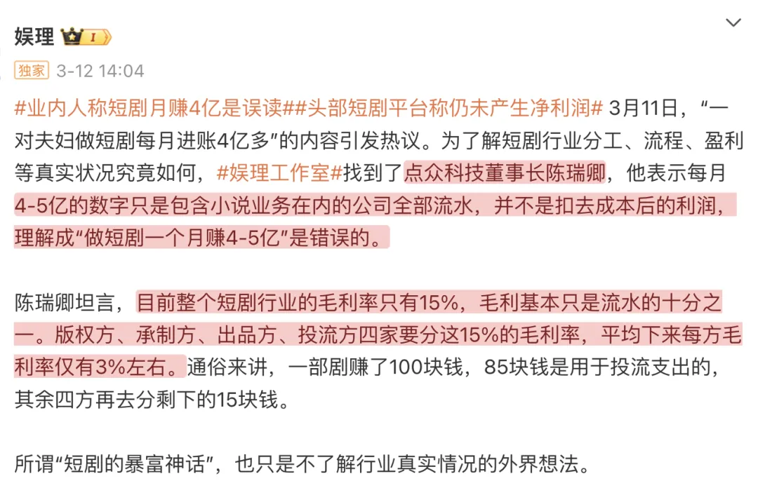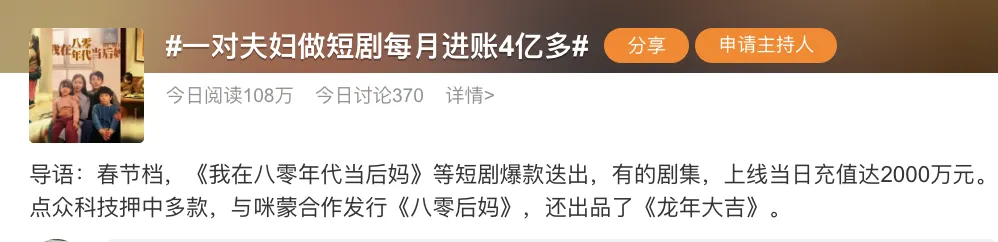 “8天消耗过亿”“日充值破2000万”“横店变竖店”“市场规模增长267%”“短剧概念股一路飘红”......每天都有新的财富神话。