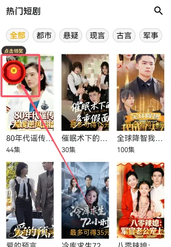 找一个短剧看,这样比较适合消磨时间,然后看中间的红色福袋点一次,看自己的金币有多少,如果金币不到六千就关闭,系统会弹窗广告出来我们稍等5秒左右关闭金币即可直接增长