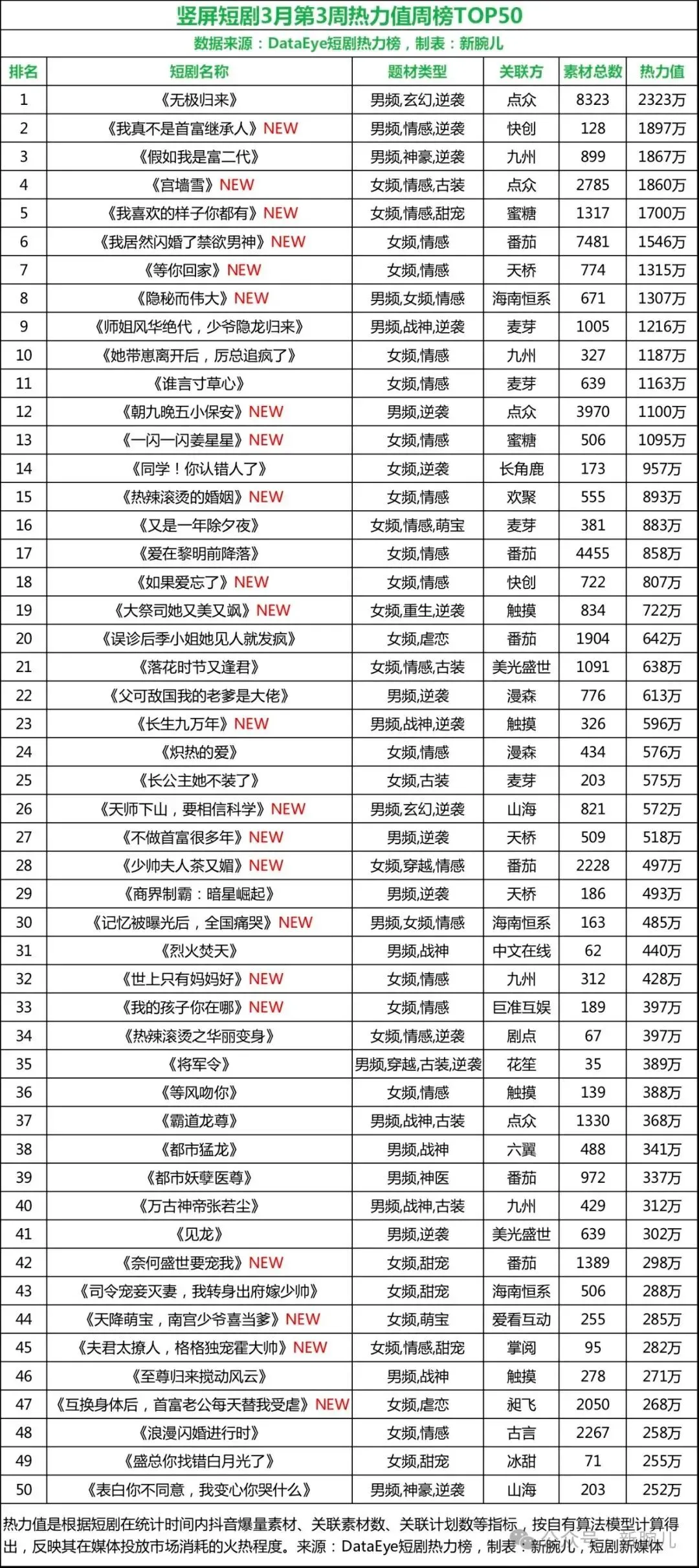 1.3月10日-3月17日短剧大盘热力值首破5亿。