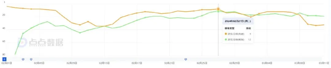 从iOS预估收入(扣除了平台分成)来看,点点数据显示,游戏上线首月3800万。而截至3月11日为5100万元,仍处于平稳上升趋势中。