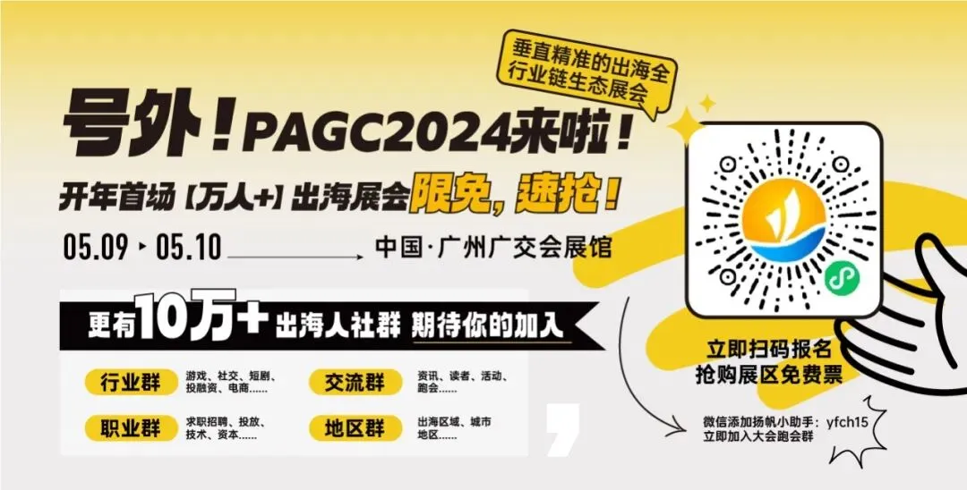 内含出海方法论8大要点、热门出海社交产品收入及下载统计、海外增长投放合规实操、百款代表作数据详解等干货。把握全产业链图谱,对接全局资源,尽在扬帆出海携手腾讯云音视频重磅推出的《2024泛娱乐社交出海战略地图》。