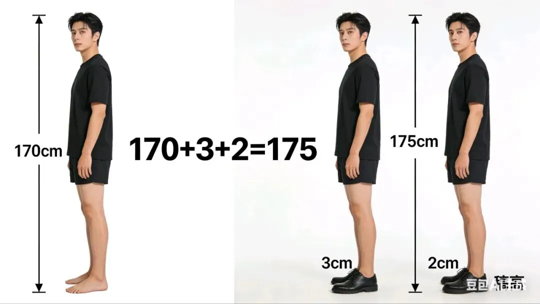 对男演员来说,这个“身高最大化”的操作特别好实现——普通皮鞋鞋跟就有3厘米,再加上2厘米的内增高垫,轻松就能实现5厘米的身高增幅。比如实际净高170cm,搭配3cm皮鞋+2cm内增高,能稳定达到175cm,就直接把175cm填在资料上;净高175cm的话,这么搭配就能到180cm,刚好契合很多男主角色的身高要求。