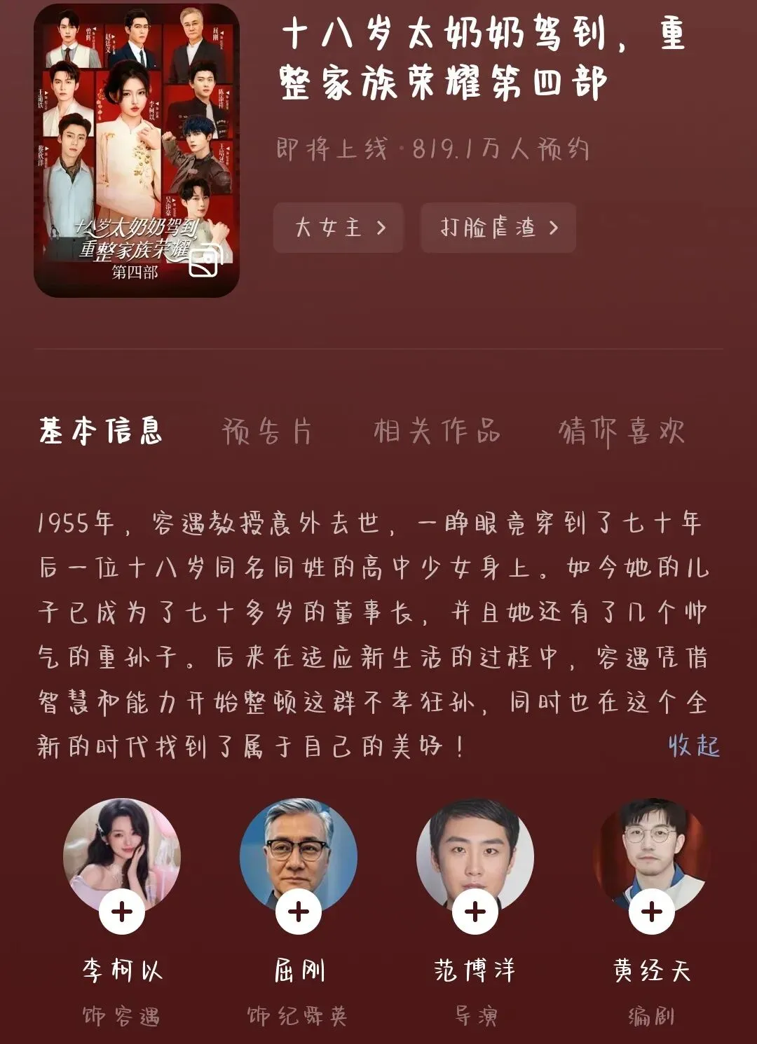 该剧目前预约人数已高达819.1万人次,在上线前,有望达到900万预约,创造一个预约新纪录!