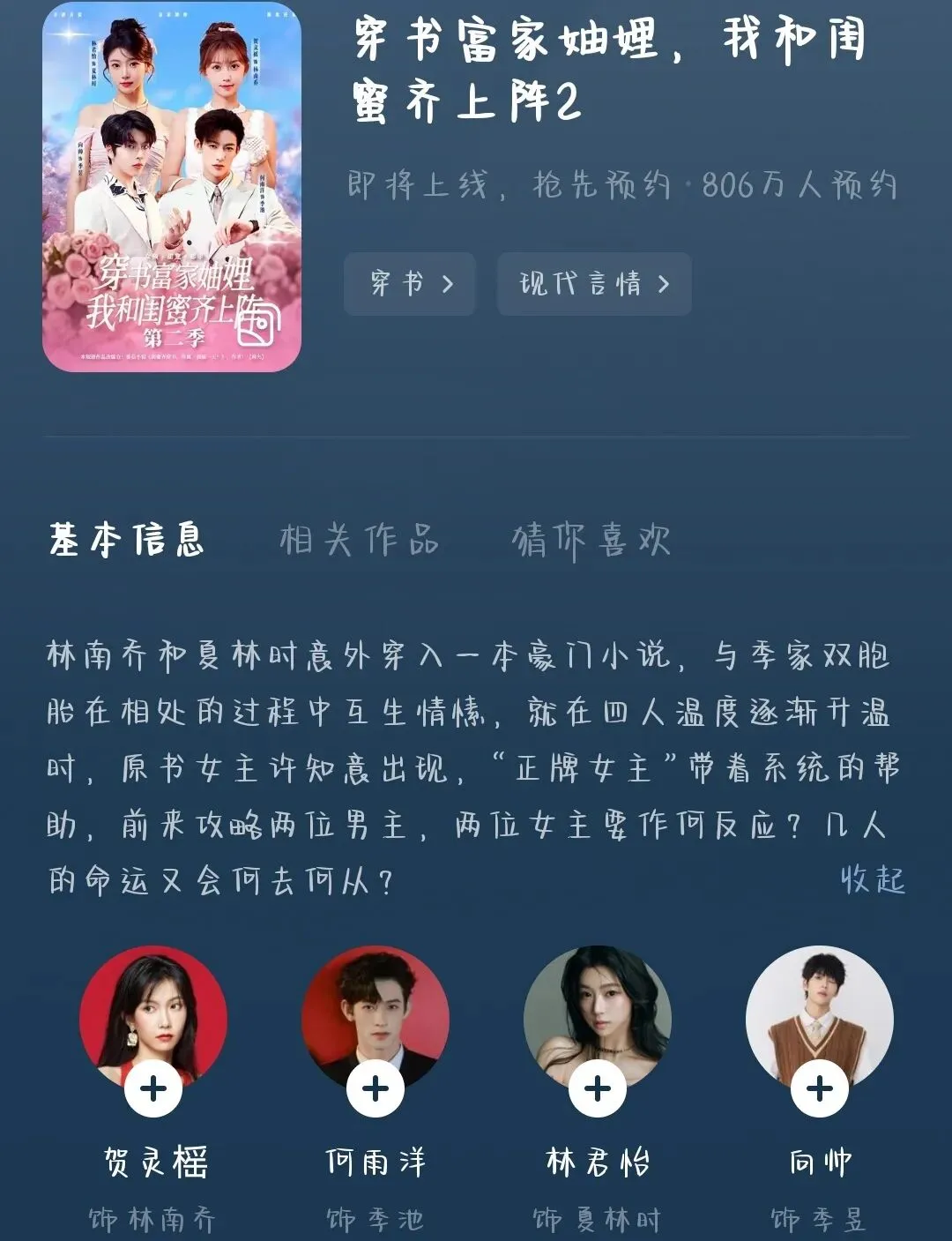 该剧第一季,讲述了闺蜜夏林时和林南乔双双穿书,成了季家双胞胎兄弟的妻子,她们的下场会特别凄惨。