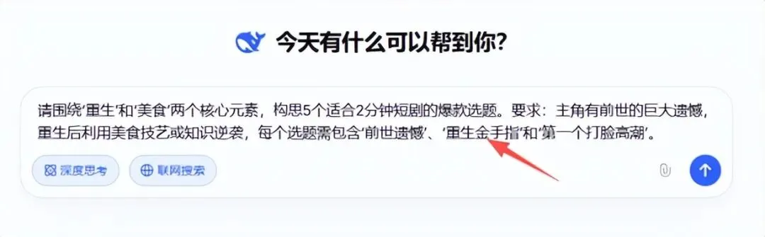 一个吸引人的剧本,是短剧成功的基石,我们可以借助文字大模型AI工具来找灵感,比如文心、豆包、ChatGPT等,这里我们以DeepSeek为例。