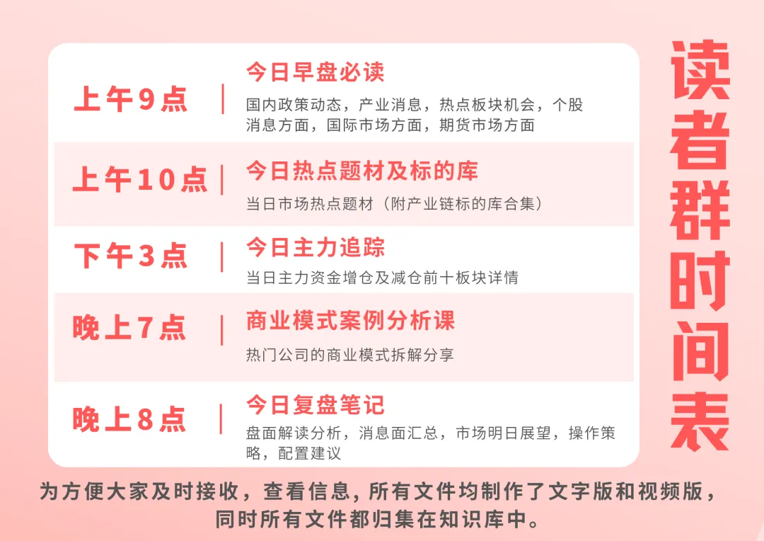 我们另外开通了读者交流群(免费福利群),里面会有市场分析和每日热点资讯解读分享,此外: