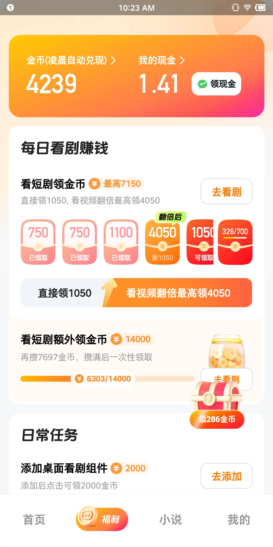 此脚本只做日常任务,上面的看短剧领金币需要手动操作。