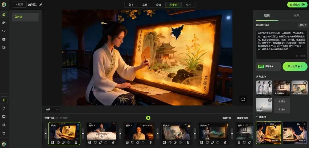 分镜静态图会自动成为对应视频片段的首帧画面。