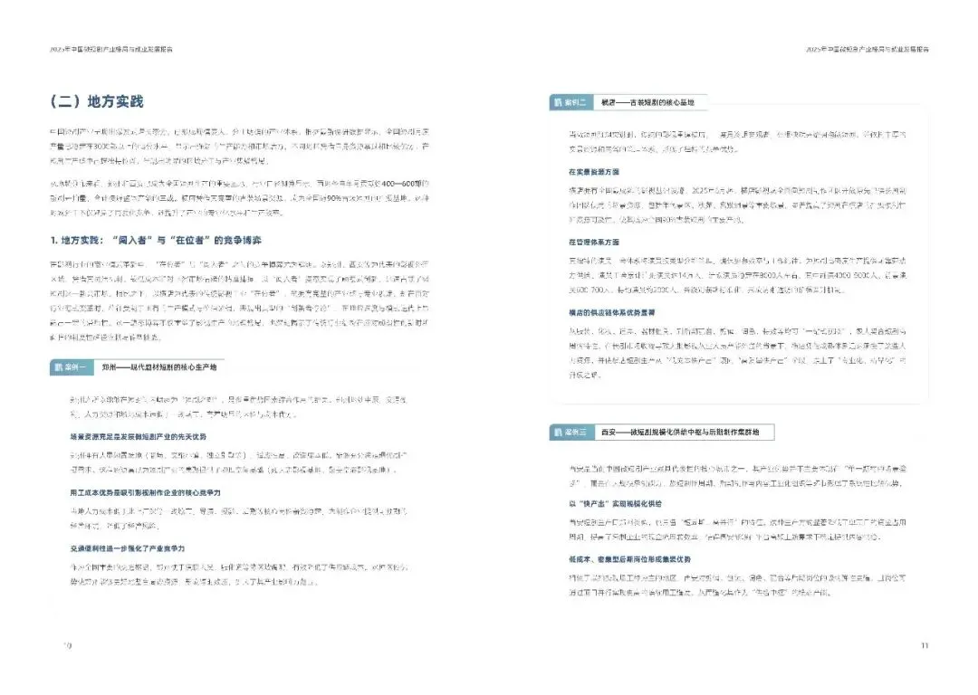 地方实践上,横店、郑州、西安依托各自优势,分别成为古装题材、现代题材及规模化供给的核心基地,呈现出差异化的区域分工格局。