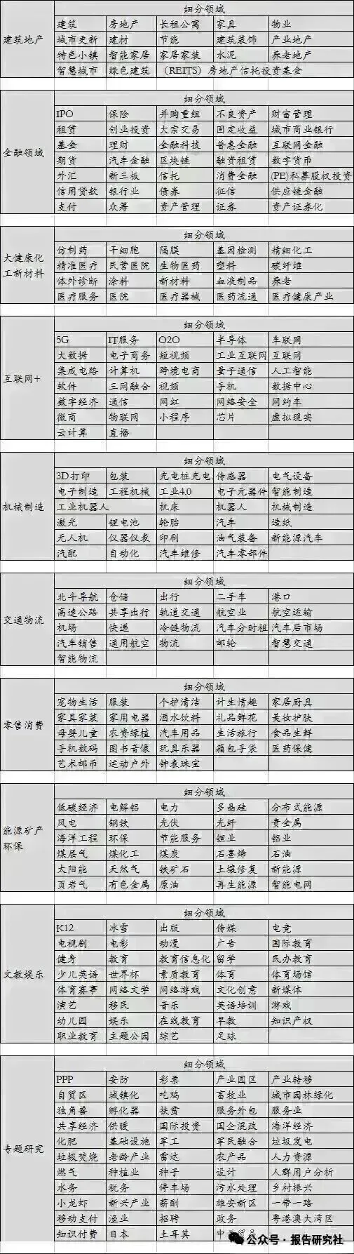 附报告覆盖行业范畴