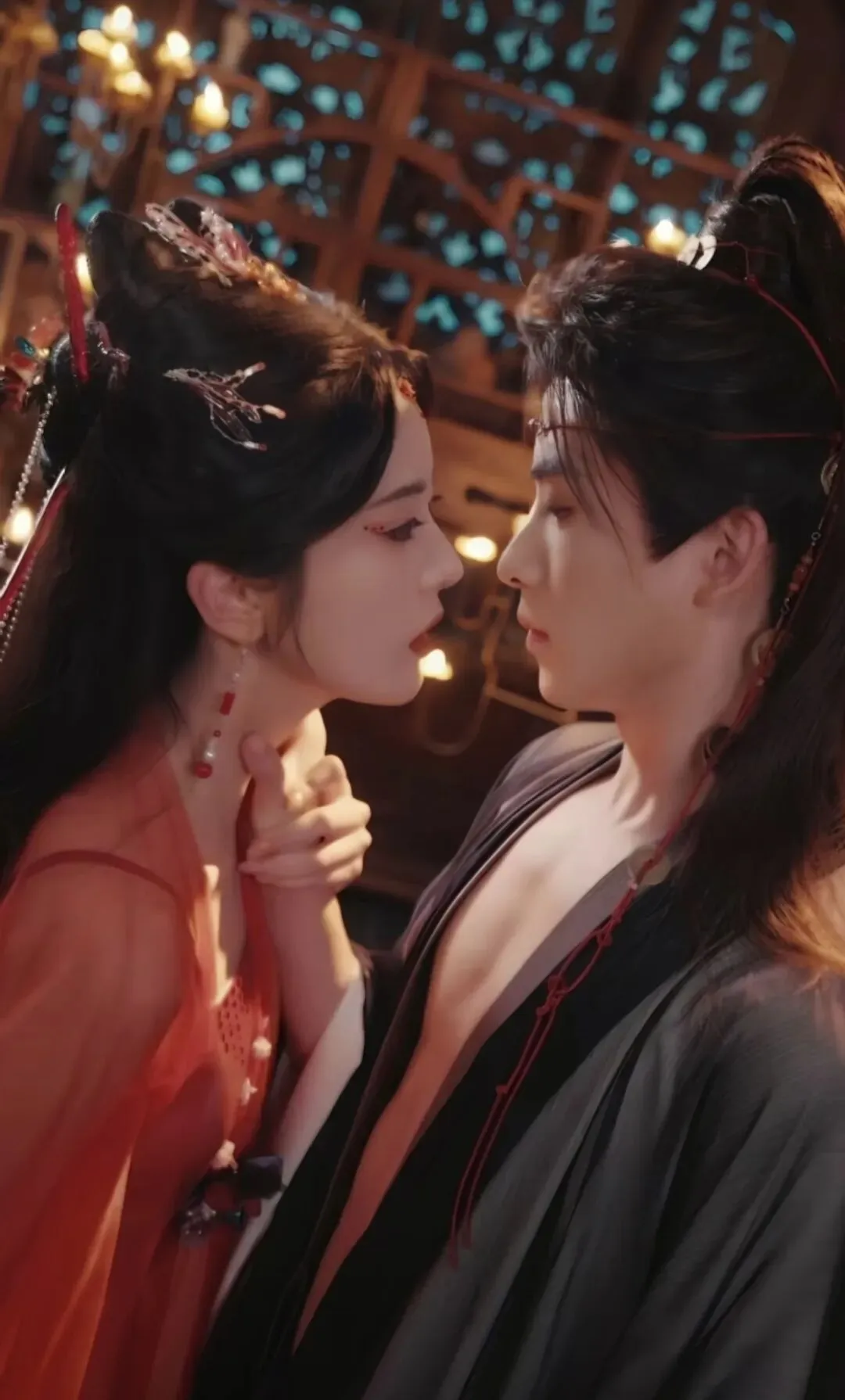 叶鑫鑫的两个角色造型都挺出彩的,前期的清冷侍女和后期的红衣黑发狐妖都蛮好看的。