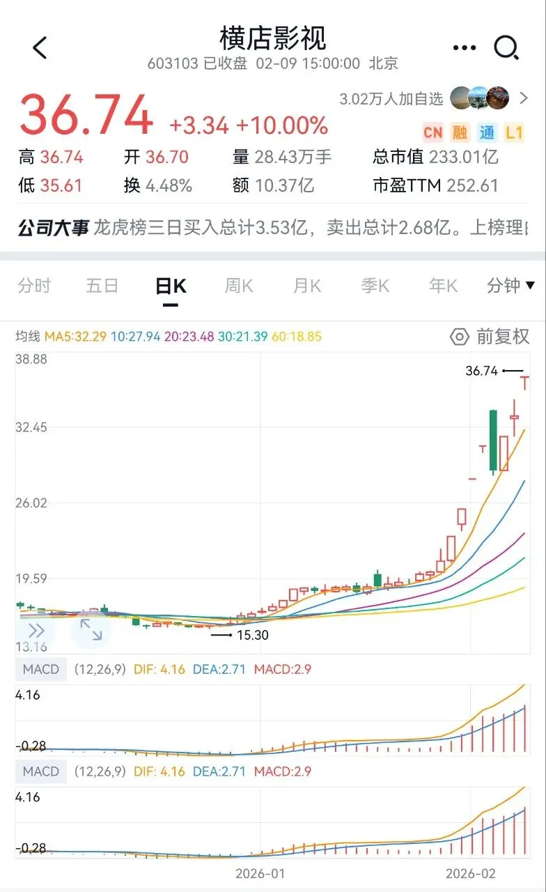 我想这几天横店影视大涨主要还是因为春节档电影的消费复苏题材,去年春节后也炒作过春节档电影题材,马年春节档也不排除炒作这个题材。