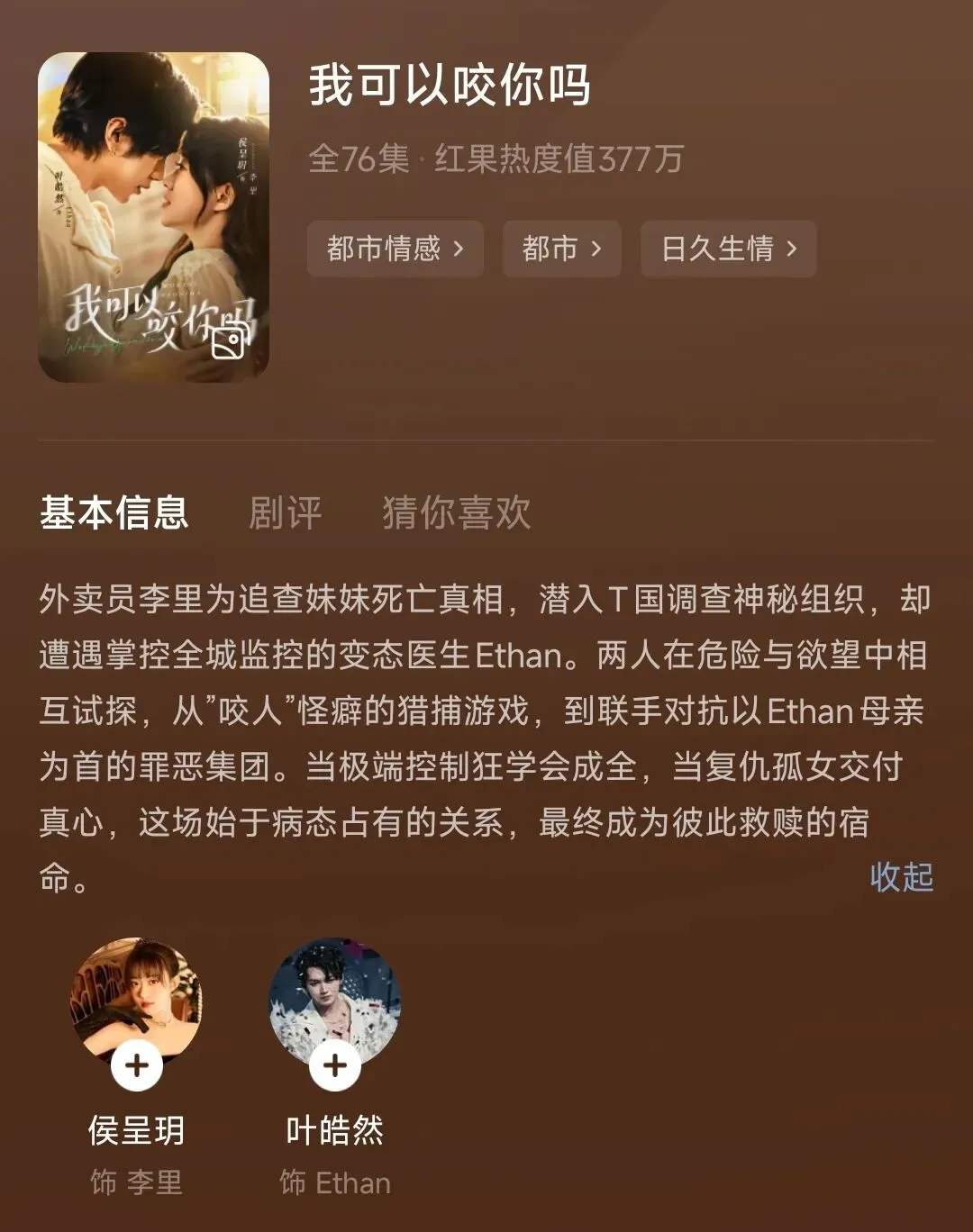 又一版《口欲期病症》(作者:雾都少女)上线啦~《我可以咬你吗》侯呈玥&叶皓然,这版也很好看哎,叶皓然又演了个病娇,但是这次的一些小点设计的蛮不错的。