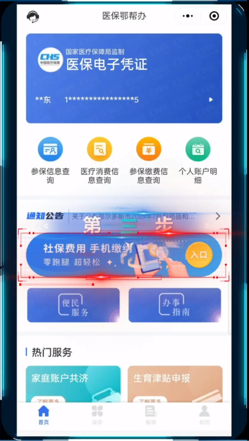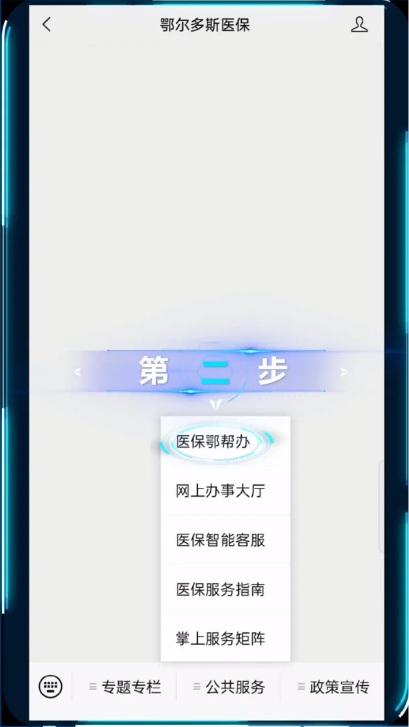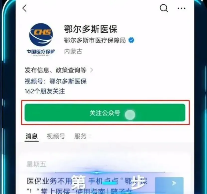 通过微信搜索公众号“鄂尔多斯医保”,点击关注。