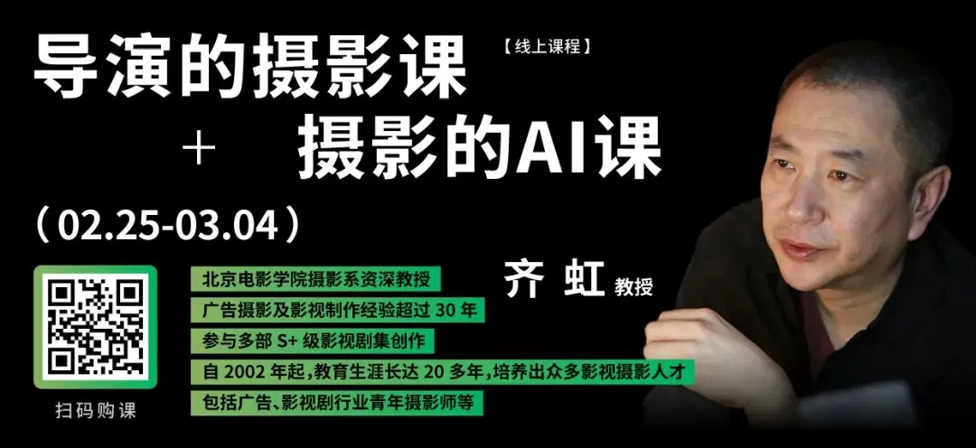摄影课,比如齐虹教授的《导演的摄影课+摄影的AI课》,不讲“一招鲜”的速成方法诀窍,而是通过对照传统与现代工作场景、创作语言、协作方式,帮学员建立传统视觉与AI视觉的对应关系,进而引发对美学以及创作的感受与思考;