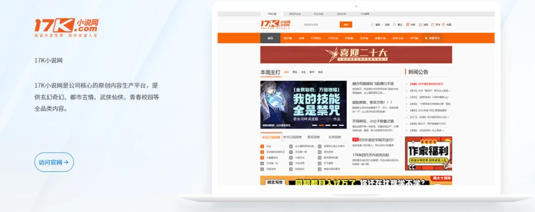 数字内容授权是公司的基本盘。依托17K小说网、四月天小说网等平台,公司累计运营超500万种正版数字内容,签约作者数百万名,采用“付费阅读+免费阅读广告”双模式。