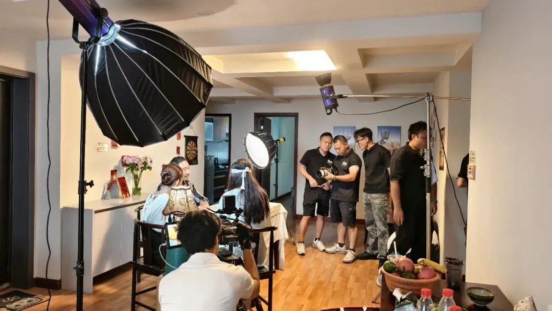 别看现场笑料百出,专业度却丝毫不打折扣。灯光师盯着演员每一个动作,像严格的监考老师,只为精准打亮最佳状态;摄影师扛着机器灵活走位,3分钟就能完成一个镜头的布光、拍摄与检查。