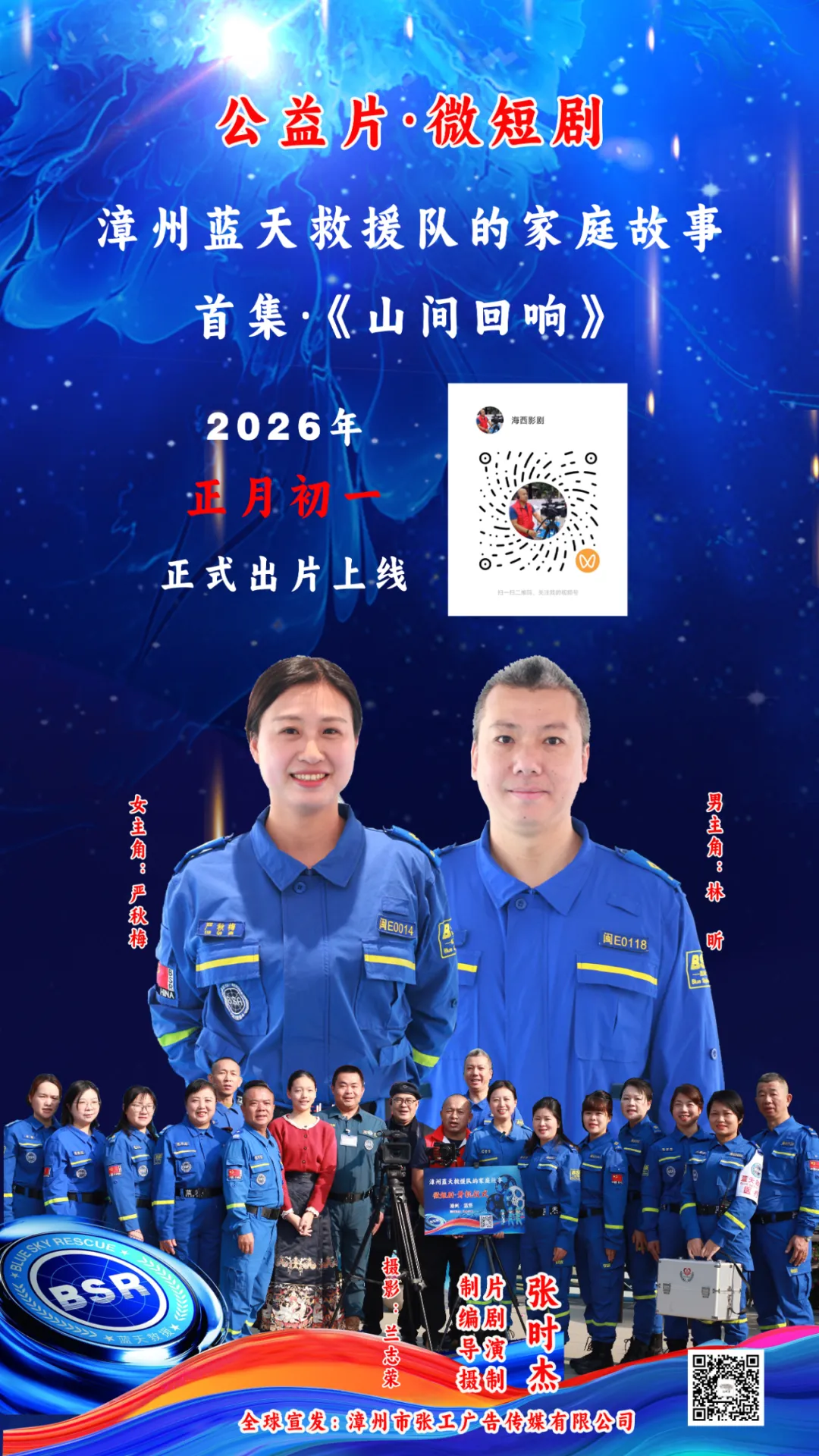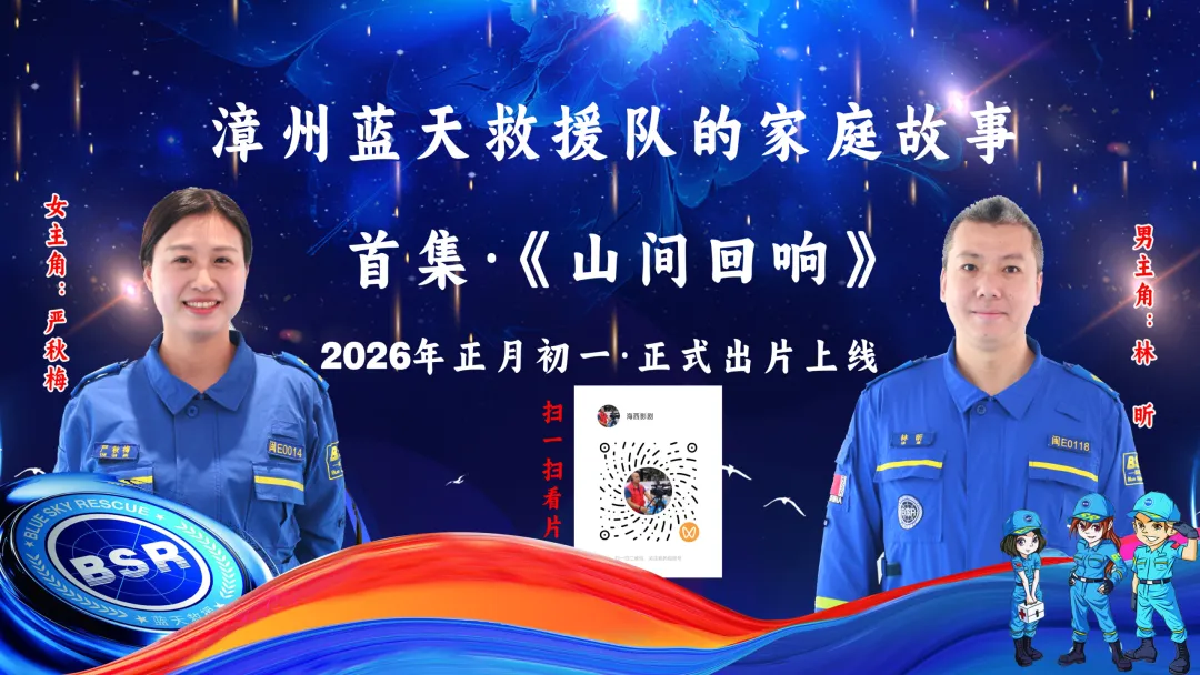 由张时杰个人投资(制片人)+首次导演+编剧+摄像+后期剪辑制作完成的,由漳州蓝天救援队20多名队员友情出演,由退休编导吴京先生担任编剧顾问的公益微短剧·《漳州蓝天救援队的家庭故事】首集《山间回响》正式上线!