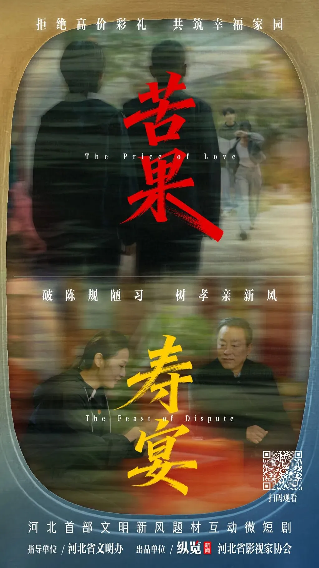2月13日,由河北省文明办、纵览新闻与河北省影视家协会联合打造的以乡村全面振兴为背景的河北省首部文明新风题材网络互动微短剧(上篇《苦果》,下篇《寿宴》)正式上线。