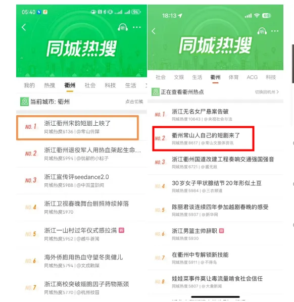 衢州市同城热搜榜第二、第一位