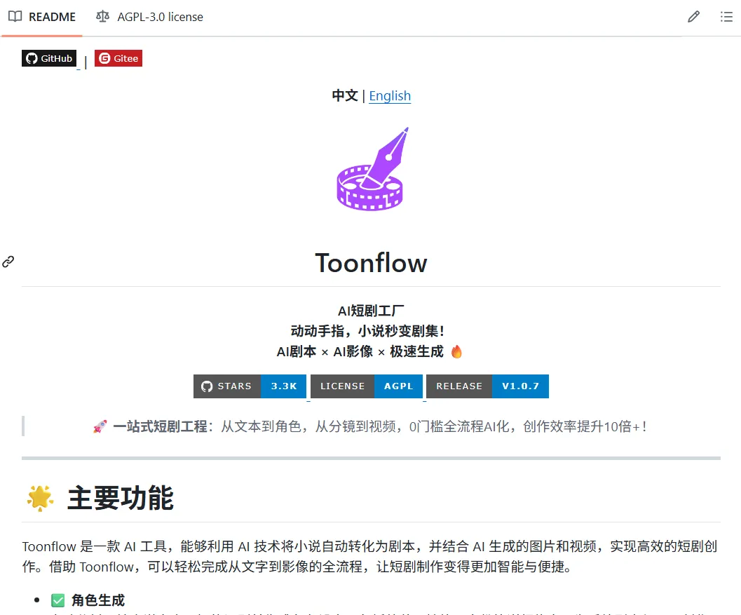 项目地址:github.com/HBAI-Ltd/Toonflow-app