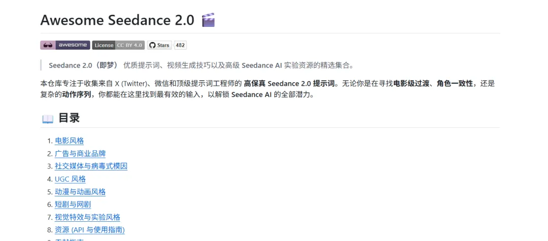 如果你在用即梦Seedance2.0做视频创作,这个仓库是目前社区里整理得最系统的资源合集。