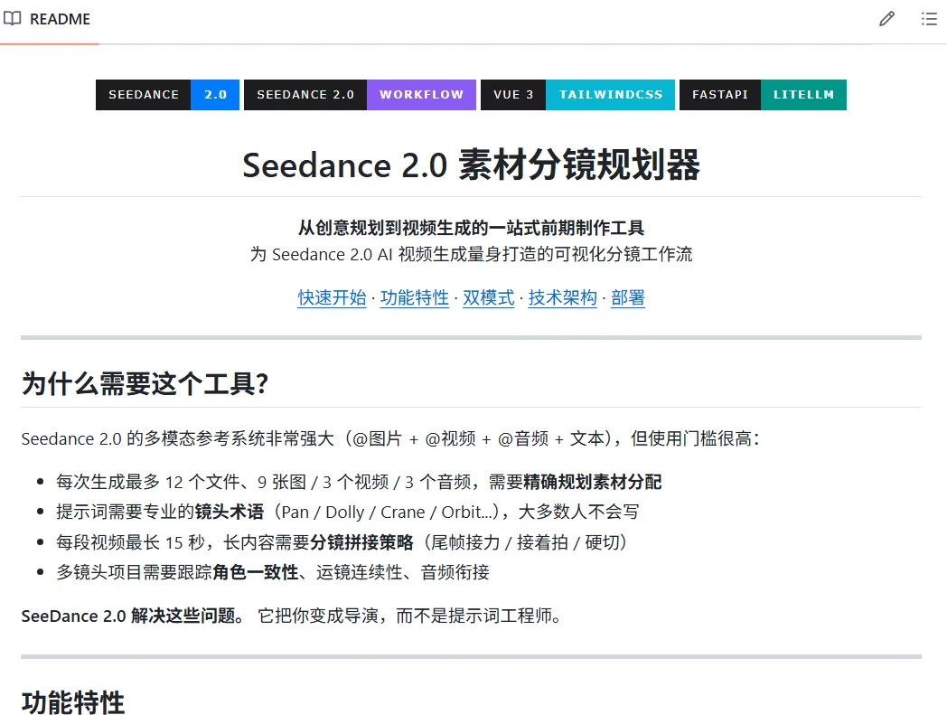 项目地址:github.com/HenryZ838978/Seedance2.0-Storyboard-Planner