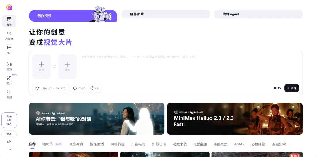 3.功能覆盖全面:文生视频、图生视频、首尾帧生视频、视频编辑、动作生成、人声生视频等