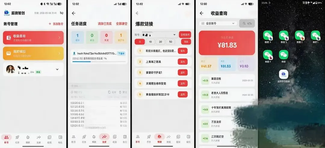 我们配套打造的专属工具,单台电脑即可同时托管100个账号,无需反复切号登录,从素材处理到内容分发全链路自动完成。