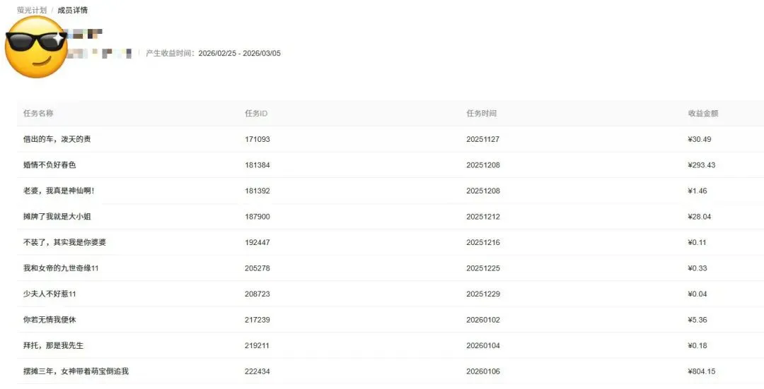 这个项目的生命周期有多长?只要快手还在运营萤光计划,只要短剧内容还有受众,这件事就可以一直持续下去。但不同阶段的收益天花板肯定不一样——现在是内测红利期,回报率远高于半年后甚至一年后才入场的情况。时间窗口的价值,懂的人自然懂。
