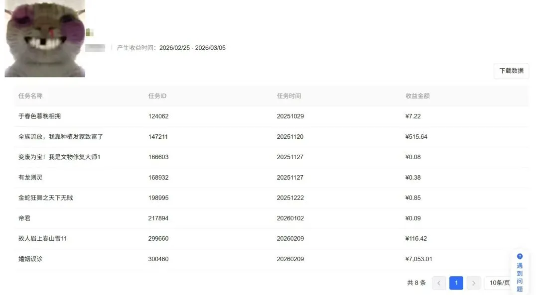 当下的流量生态非常友好——基本上内容一发布就能产生收益,哪怕是刚注册的新号,当天就能在后台看到数据跳动,属于典型的"量大出奇迹"阶段。