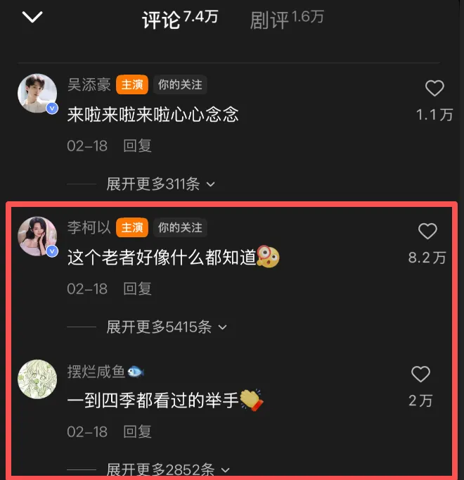 然后就是集数&时长&数据概要:单集2分钟,94集全更完,听花岛的家族IP第四部,前3部已积累了大量的粉丝,收获了不少好评,第四部单部热度更是达到了1.76亿,全系列加起来超5亿。红果必看榜排名第二,主演一条评论8.2万赞,下面5000多条全是老粉打卡,全在喊“一到四季都追完的举手”。