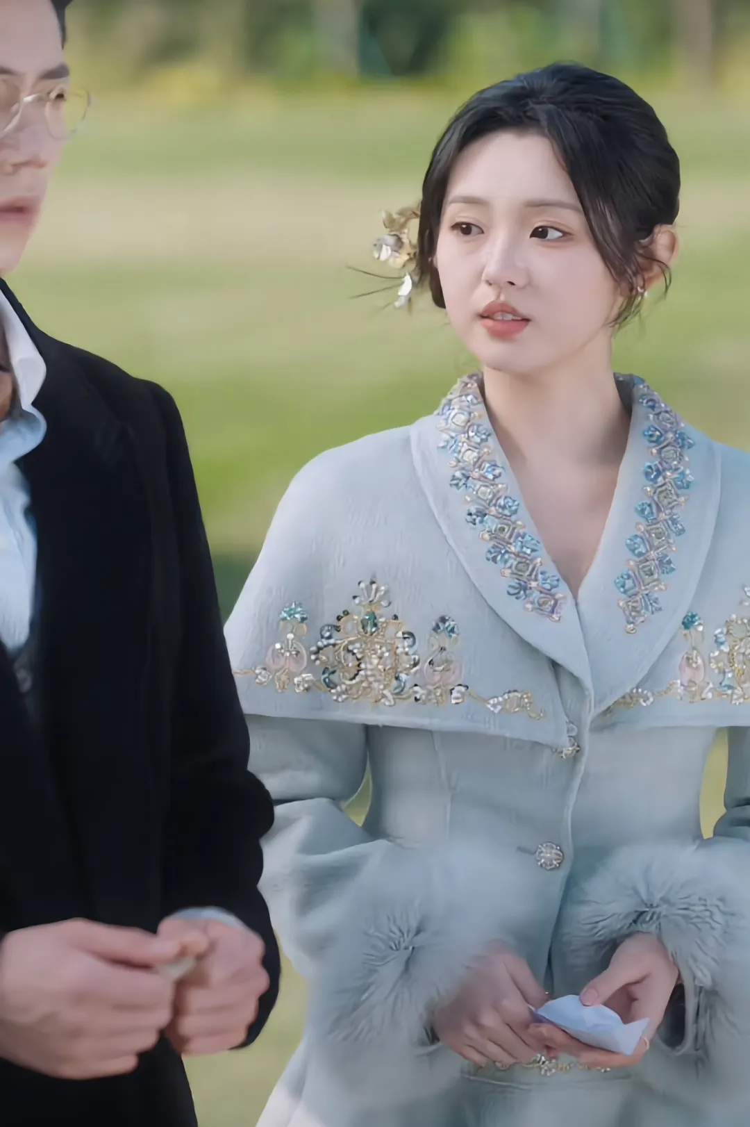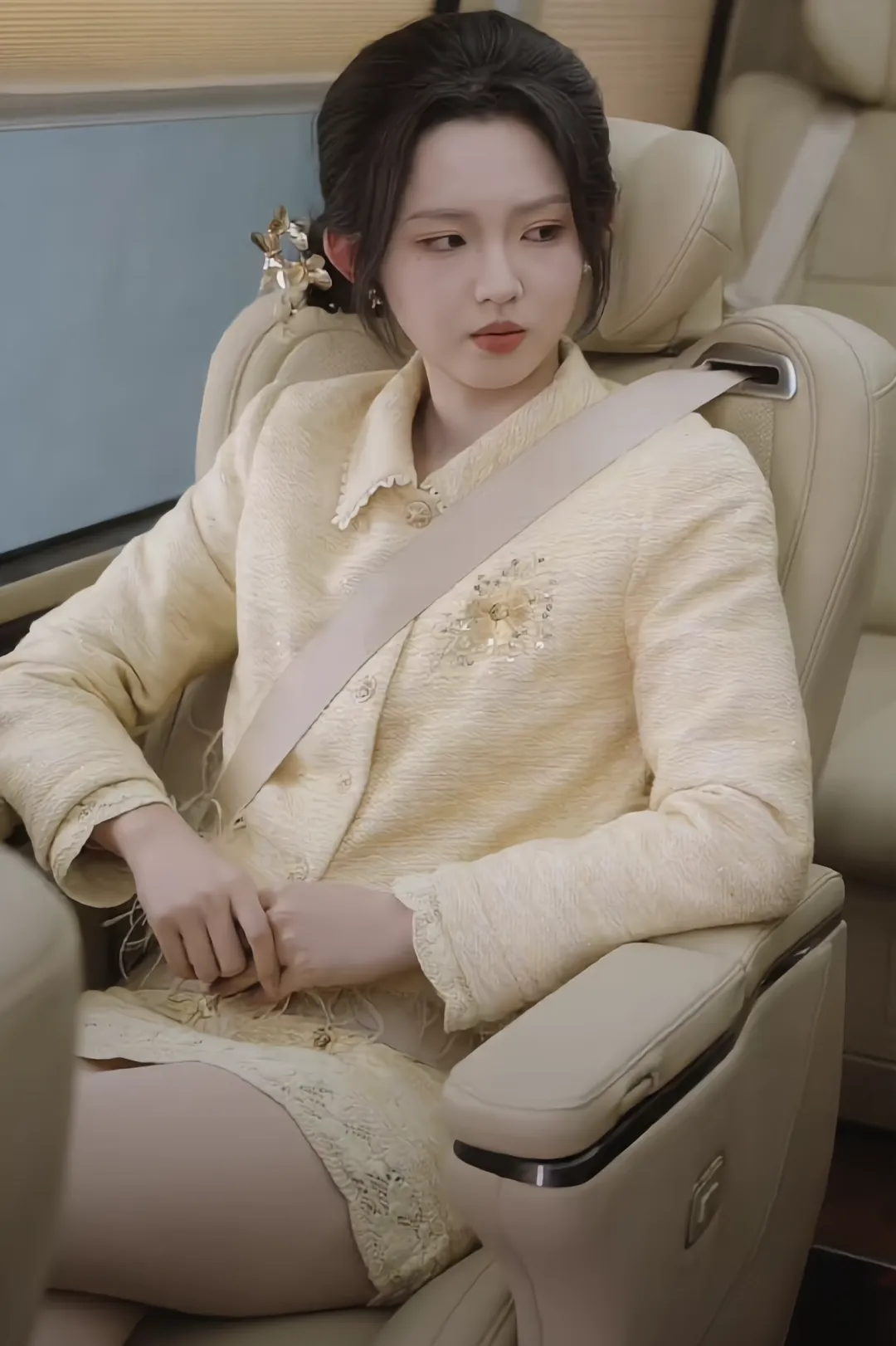 还有太奶容遇的整体人设打扮方面,发型以低盘发 / 低丸子头为主,搭配精致发饰(如珍珠发簪、金色步摇、粉色花朵发夹等),部分场景会留出几缕碎发修饰脸型,既显端庄又不失少女感。自然的深黑色(或深棕色)发色,质感顺滑,符合民国穿越者的复古气质。穿搭方面,不同场合不同着装,剧中分别有民国复古风、现代职场 / 精英风、日常休闲风。整体造型装扮完美诠释了 “少女外表 + 老灵魂” 的设定。她的神态:从容淡定、眼有定力,少女身,长辈态;她说话的语气:声嫩语沉、淡而有力,不娇不炸,话少气场足。是典型的外表软萌、内核强大的爽文女主IP形象。