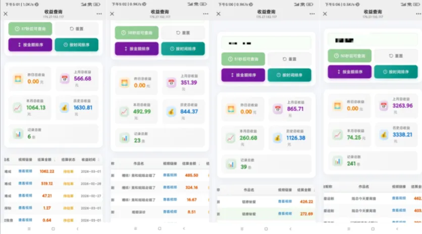 从1月16号我们开始内测,参与内测的团队一共上了200多个达人,差不多1000个快手号,一天基本能能跑出来1-2万的总收益