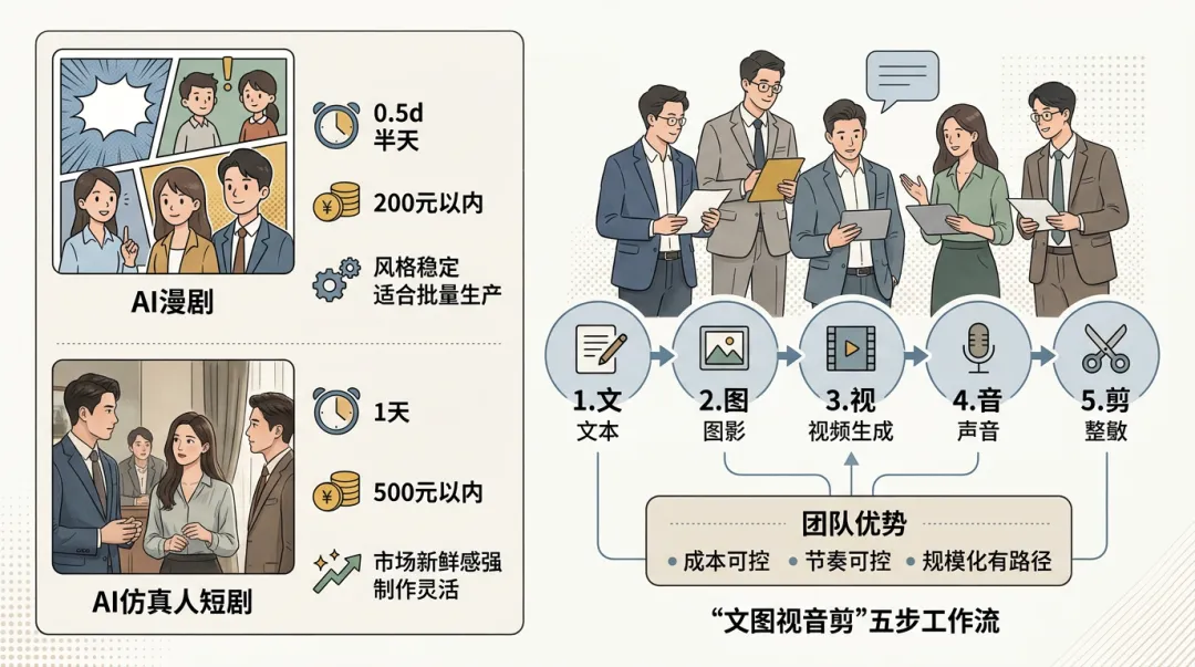 两年时间,从漫剧到仿真人短剧,从手搓流到资产驱动,从每集花几天到现在半天出片。