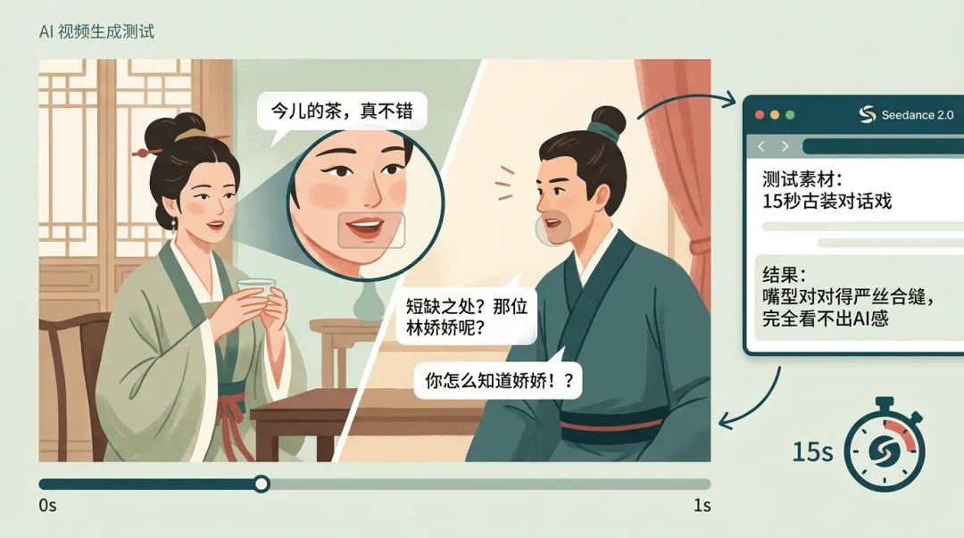 Seedance 2.0出来的效果,台词没有任何嘴瓢,嘴型对得严丝合缝,完全看不出AI感。