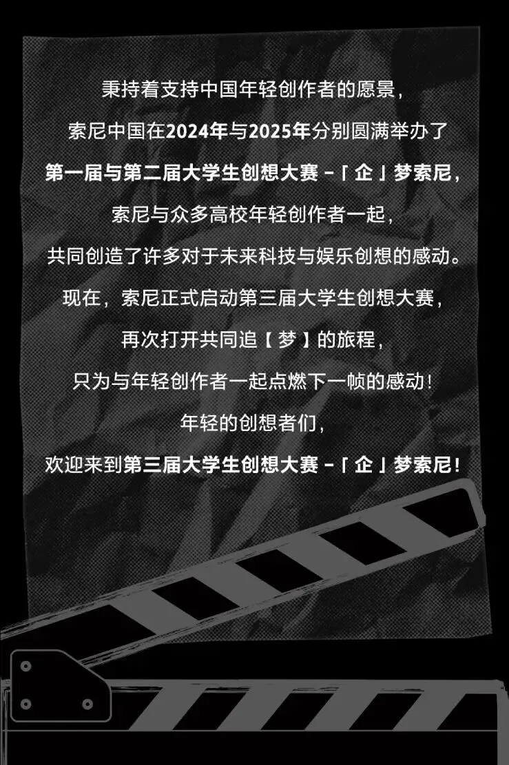 >「企」梦索尼,第三届大学生创想大赛 - 短剧作品征集中