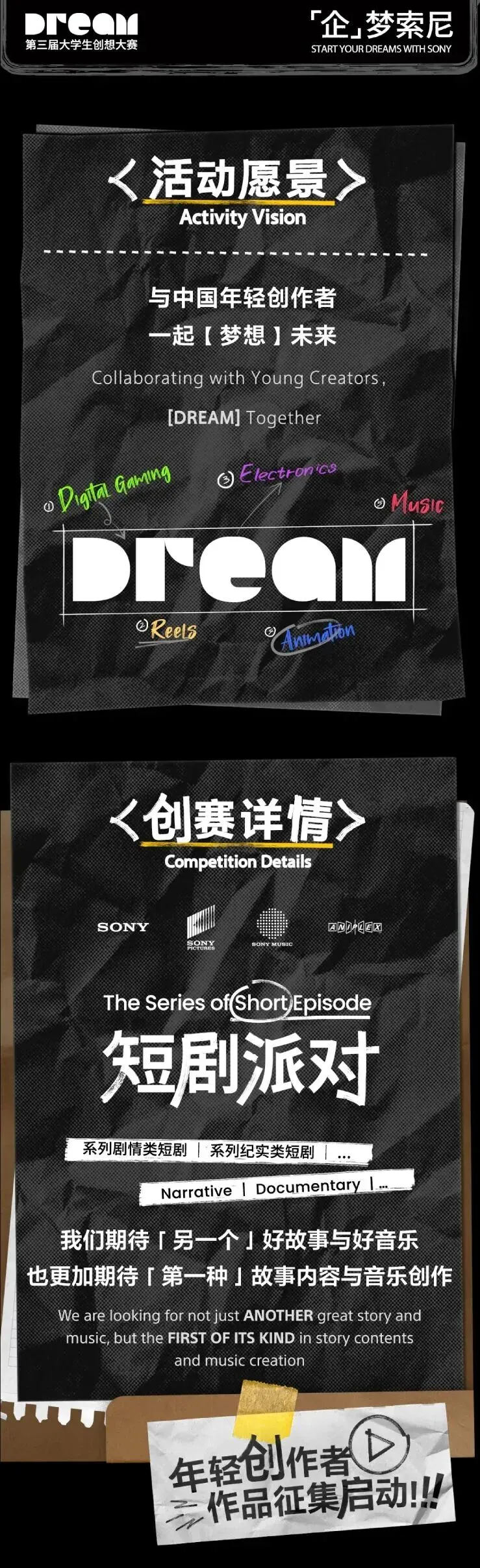 「企」梦索尼,第三届大学生创想大赛 - 短剧作品征集中