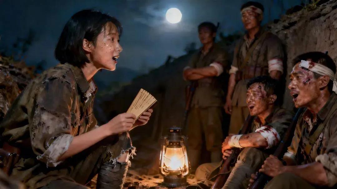 坑道里出现熟悉身影,赵金志高兴地发现,熟悉身影竟然是田妮。她参加鲜语培训班,也到了朝鲜。秋夕节,她向韩军喊话,歌声让敌兵感动涕零。