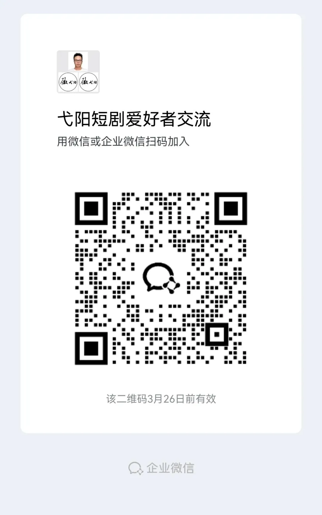 一起进群商量剧情、策划内容、分工创作,共同打造属于弋阳人自己的系列短剧!